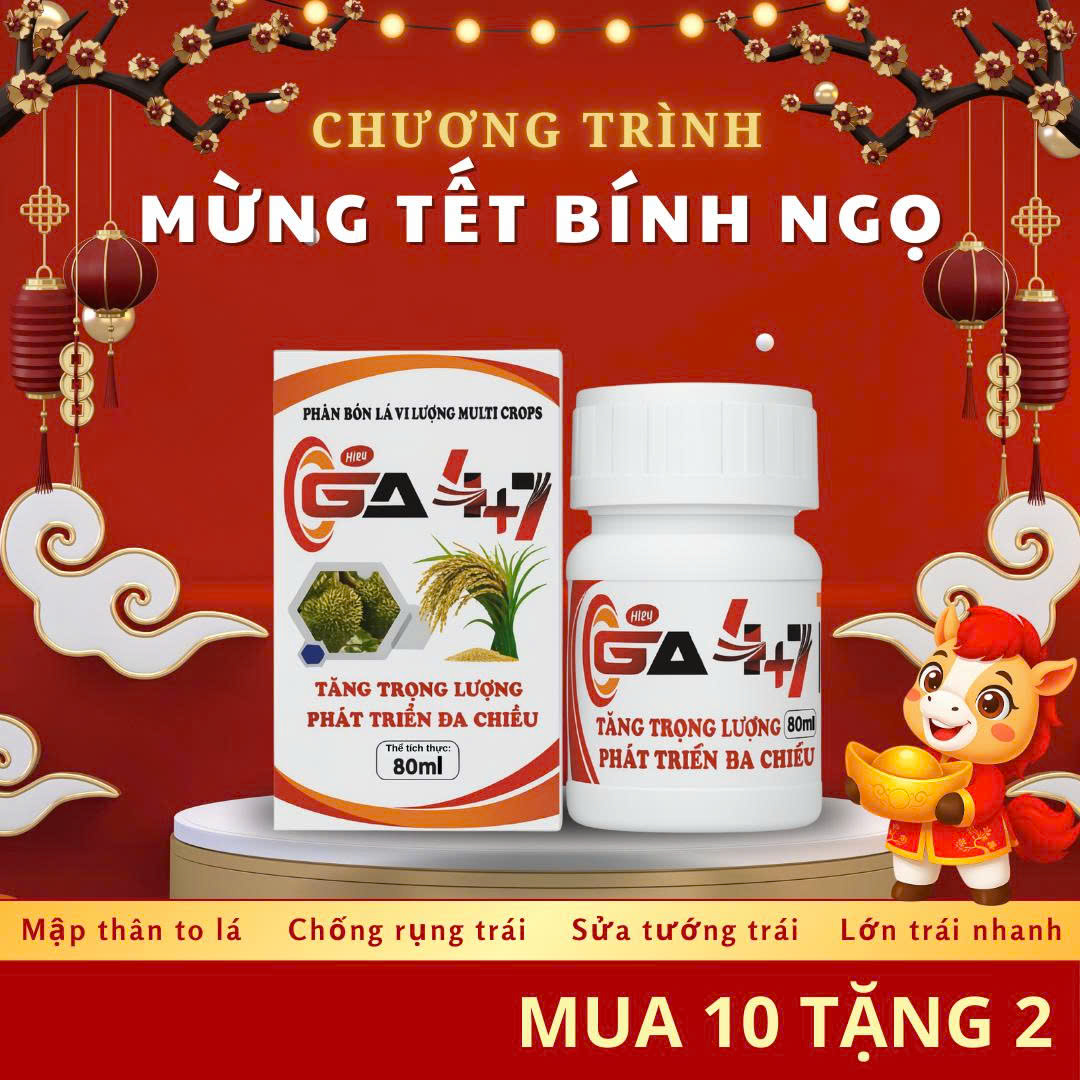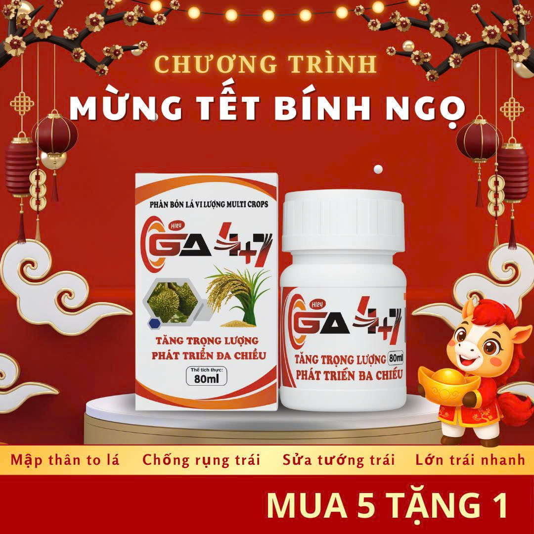 (Lưu ý: GA4+7 không phải dinh dưỡng và không thay thế chất dinh dưỡng cho cây trồng. TUYỆT ĐỐI KHÔNG LẠM DỤNG SẢN PHẨM)
